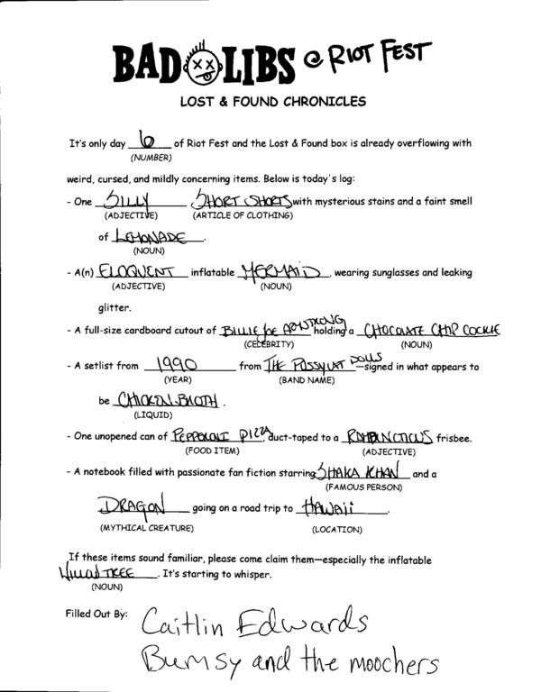 Bad Copy’s infamous BAD LIBS are back to help Riot Fest celebrate their 20th anniversary! Our Bad Copy team spent the music-packed weekend running rampant all over Douglass Park in Chicago watching bands and then sprinting back to the Press Area for round after round of one of our favorite nostalgic games!