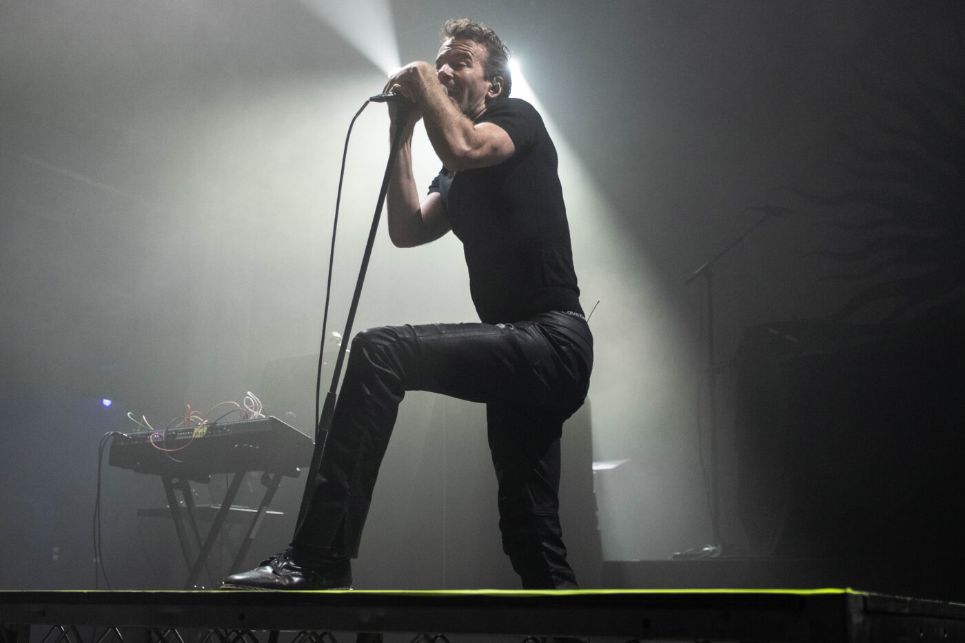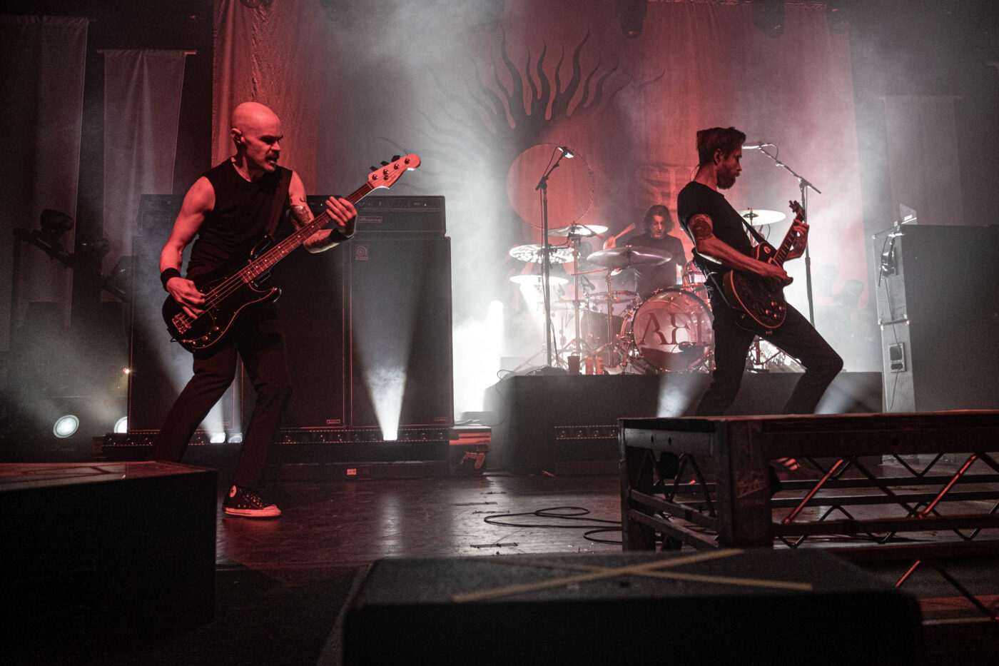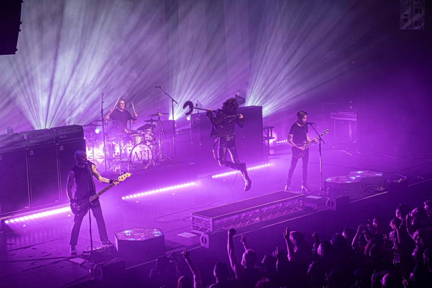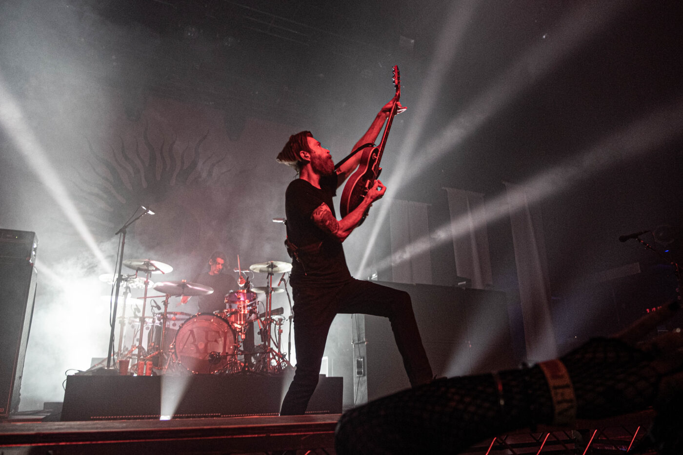 In all the years that I have seen AFI, one of the things that I remember most about their live shows is how they always pair the perfect opening band(s) who compliment their newest album or sound. Tonight, we were graced with TR/ST (pronounced TRUST). They are a duo from Toronto that leans heavy on dark synth pulses and submerged vocals. The quickly set the a mood in the 3,000 cap venue that was strangely intimate yet full of reverberations and shadows. There was basically no stage banter; they were all business, moving from one track to another with a “thank you” thrown in here or there.