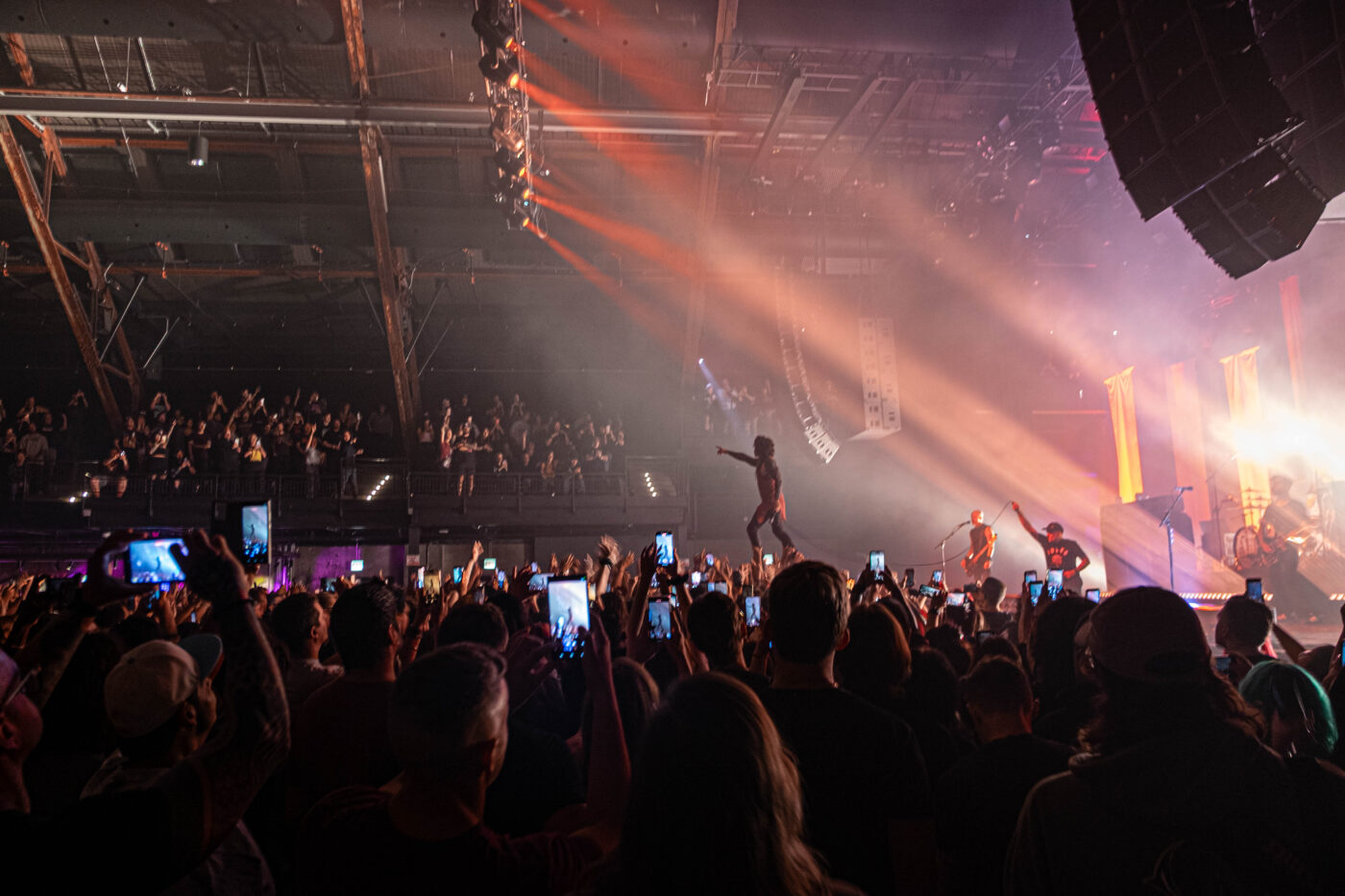 All of these thoughts and feelings came to me at rapid speed throughout the show as I walked the venue finding nooks and crannies to take photos from. And when they played “Days of the Phoenix” (a song that I would not consider neither sentimental nor one of my favorites) I will be goddamned if I did not get choked up and shed a few tears as more core memories danced somewhere just behind my eyes. And then Davey did it… he hopped off the stage and into the crowd; not for the first time during the set, but for the most important time. The band was playing “I Hope You Suffer” and suddenly, he was floating above the crowd as Fritch (one of those tried and true roadies) helped with his chord and mic. All these years later and Davey Havok is still successfully head walking on the crowd. I loved it!