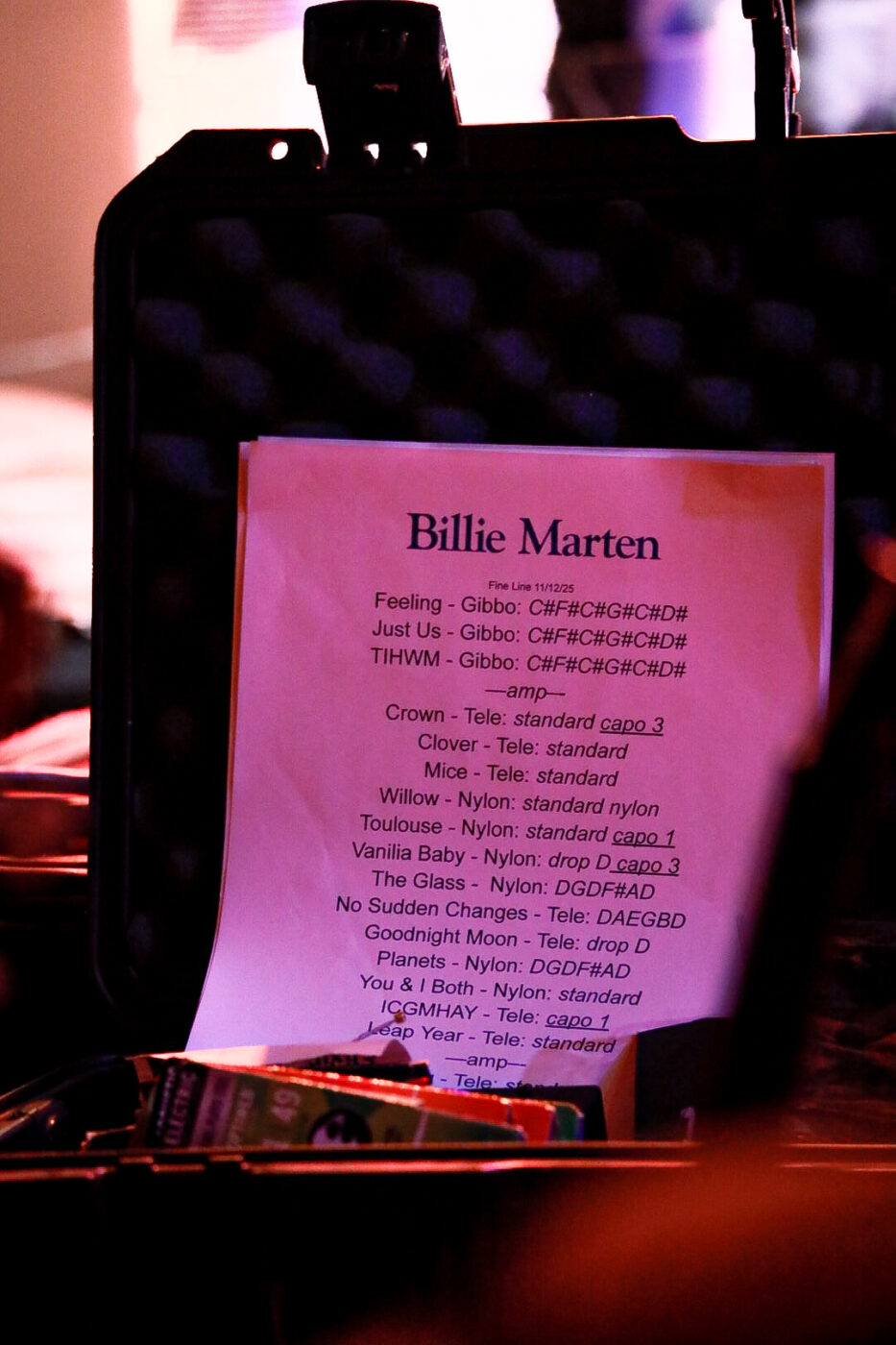 Billie then took the stage. She was accompanied by Katie Martucci on bass and Andrew McGuire on the drums, together the three of them performed Billie’s music beautifully. Her songs “Crown” and “Vanilla Baby” are staples and seemed to be the crowd favorites! Within seconds of starting the crowd applauded and began singing along. With just a few songs left Billie invited Núria back out and shared how closely they worked together on her newest album Dog Eared, “intertwined” is how she described their creative processes. With snow falling outside, the cozy atmosphere inside the venue perfectly matched the quiet beauty of the performances.