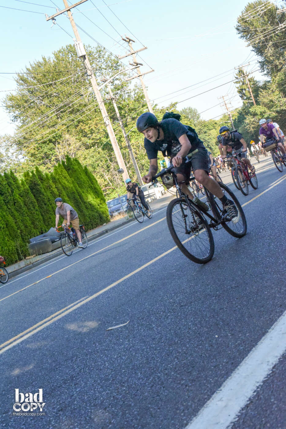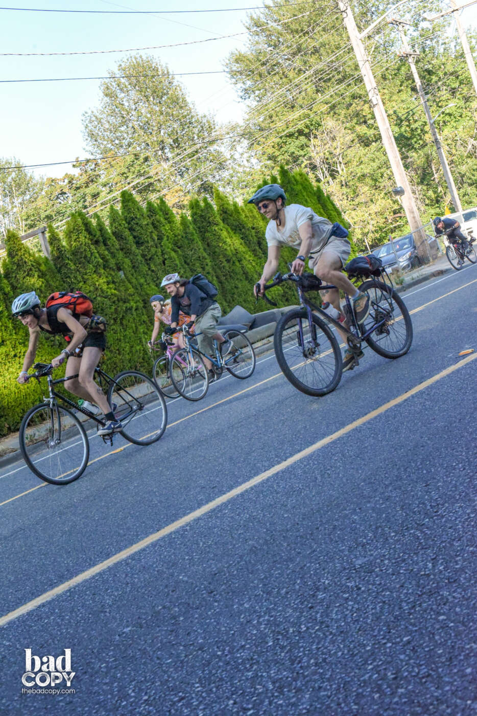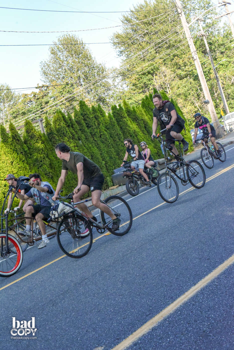 After a day spent pedaling and pouring sweat, we finally arrived at the meeting point and registration table for the 29th official Dead Baby Downhill Race. Luckily for all degenerates involved, this meeting point was a watering hole by the name of “Flight Path” and this spacious venue supplied copious amounts of Rainier beer (of which I found my experience would have no shortage of) and tequila shots. I heard that they had a full kitchen as well, but any true athlete knows that eating a meal right before a proper race will only slow you down. So, we avoided any sustenance that wasn’t liquid and collected our commemorative t-shirt and water bottle (more on the water bottle later) and prepared for the most important race of our lives. Like any good photojournalist might do, I left the pre-party a bit early to scope out the race route for the best spot to plant myself and capture the sights of this iconic event.