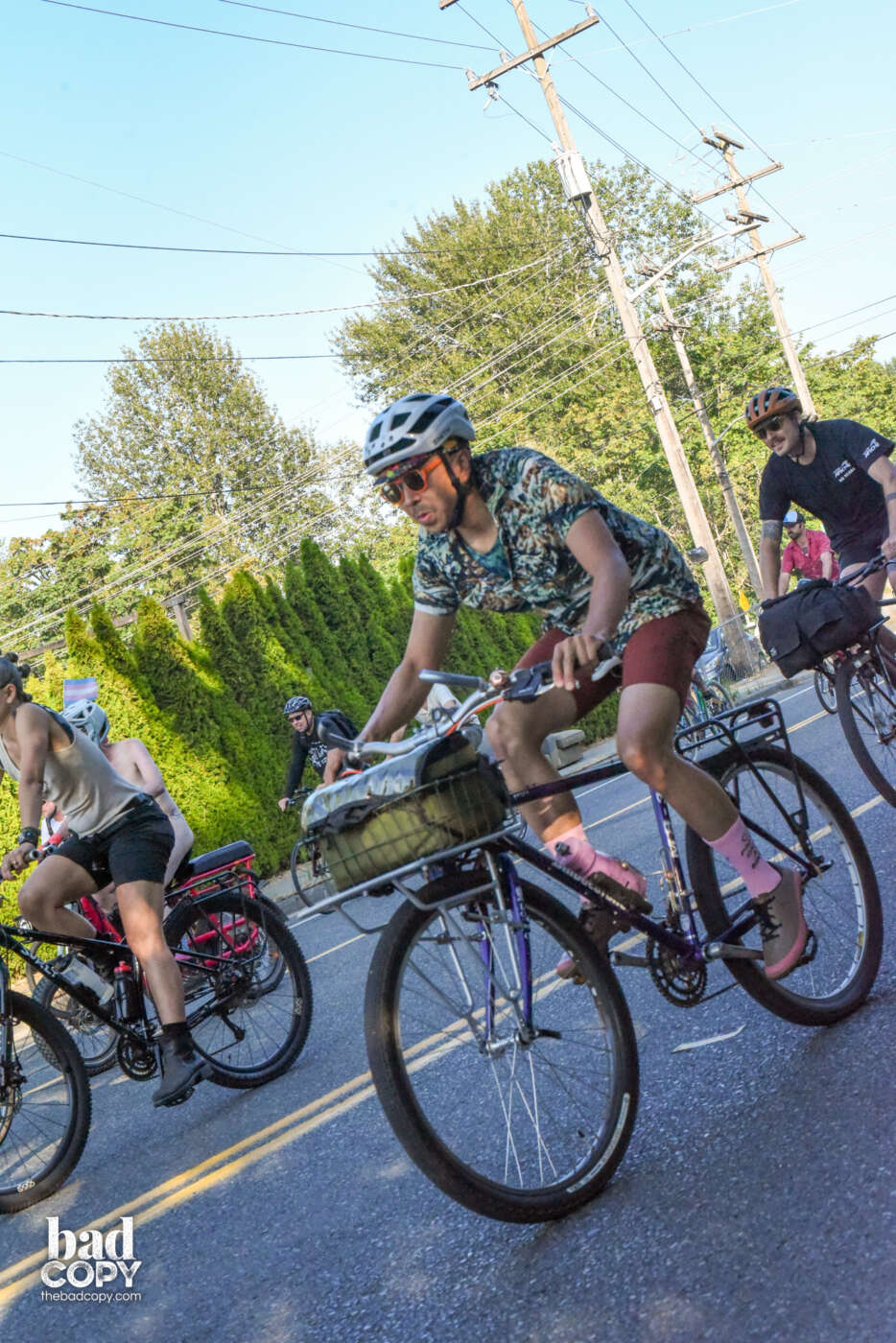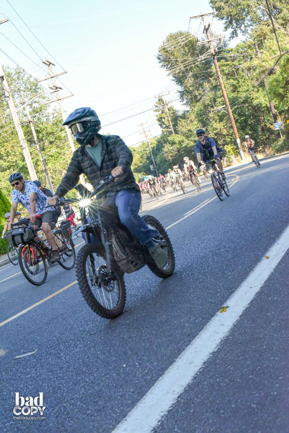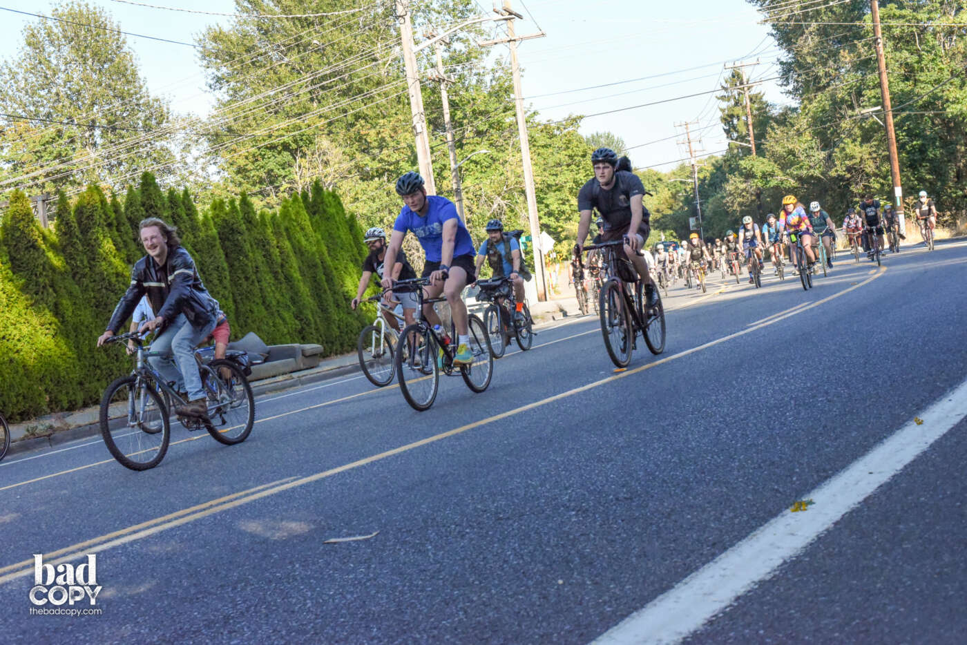 After a day spent pedaling and pouring sweat, we finally arrived at the meeting point and registration table for the 29th official Dead Baby Downhill Race. Luckily for all degenerates involved, this meeting point was a watering hole by the name of “Flight Path” and this spacious venue supplied copious amounts of Rainier beer (of which I found my experience would have no shortage of) and tequila shots. I heard that they had a full kitchen as well, but any true athlete knows that eating a meal right before a proper race will only slow you down. So, we avoided any sustenance that wasn’t liquid and collected our commemorative t-shirt and water bottle (more on the water bottle later) and prepared for the most important race of our lives. Like any good photojournalist might do, I left the pre-party a bit early to scope out the race route for the best spot to plant myself and capture the sights of this iconic event.