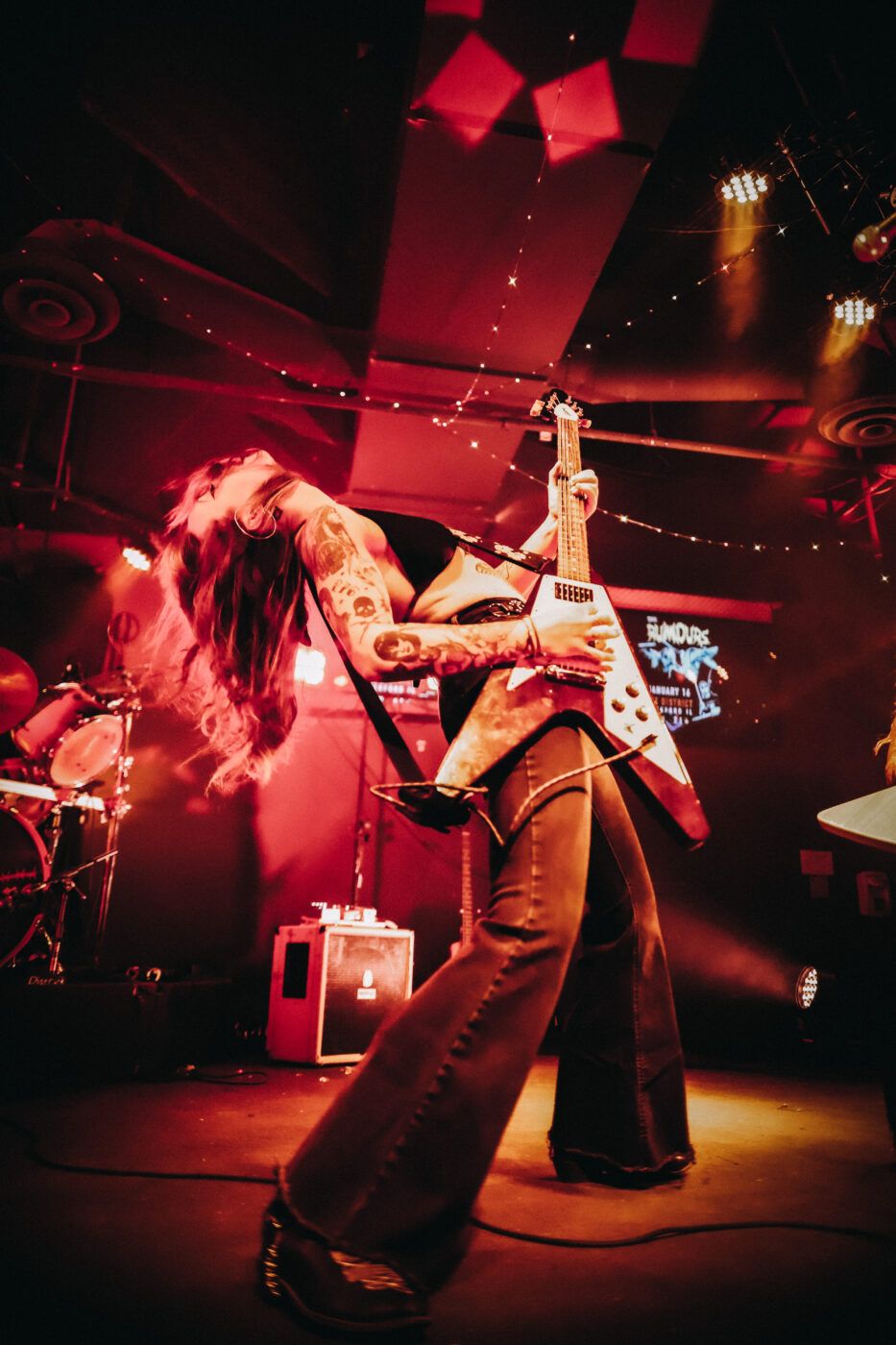 The main act of the night is The Rumours, a rock band from Waterloo, IA. They are known for their electrifying performances, and their classic punk vibe. By the time they took the stage, the venue was packed with fans. The band entered the room with great enthusiasm, they greeted everyone in the room, then began performing. Throughout the set, they maintained an interactive relationship with the crowd, they also fell into backbends as they shredded their instruments. The crowd fed off their vibe, moshing and shouting along in perfect unison. The band’s stage presence was electric, and their connection with the crowd was undeniable.